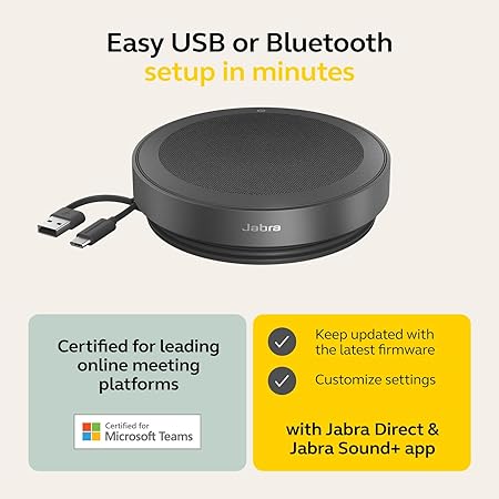 “Jabra Speak2 40 Portable Speakerphone - 4 Noise-Cancelling Mics, 50mm Full Range Speakers with Wideband Audio for Clear Sound, USB-A/USB-C Connections - Certified Microsoft Teams Speaker (2740-109)” was added to the compare list